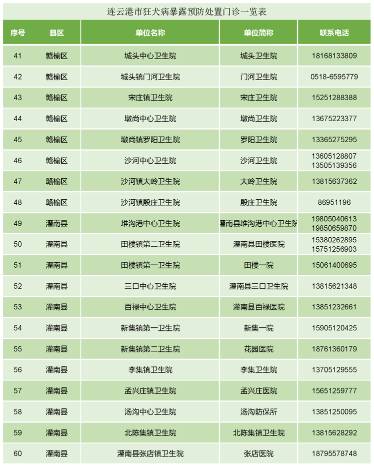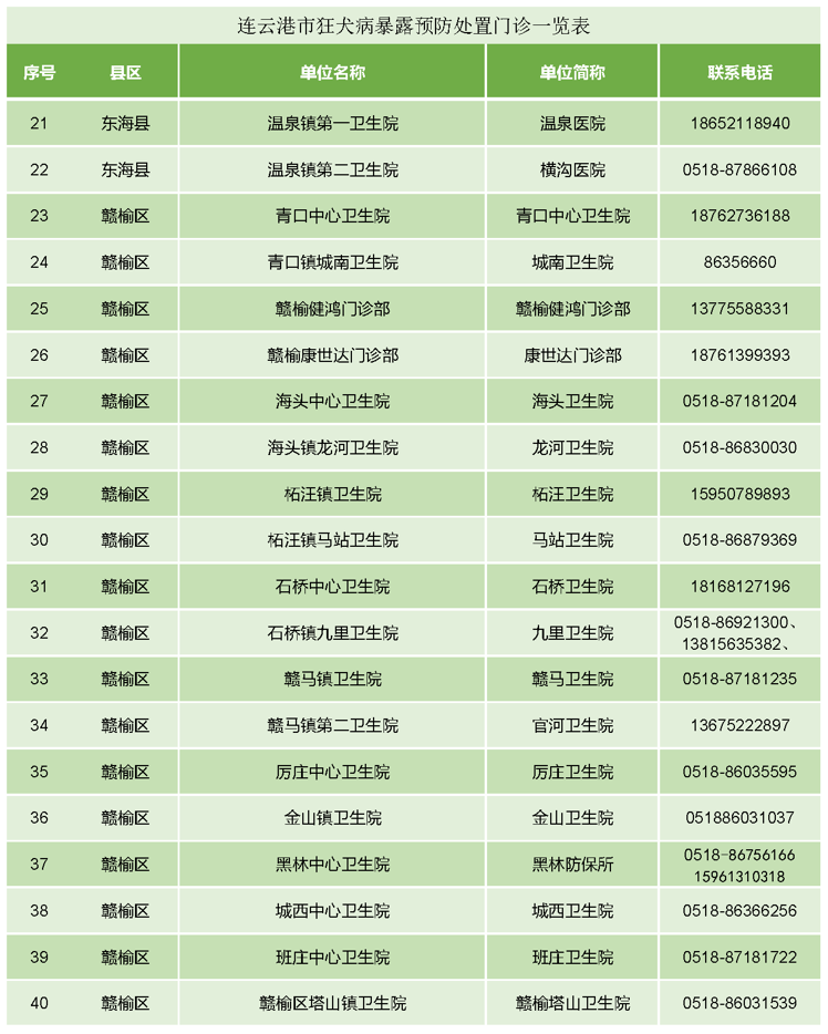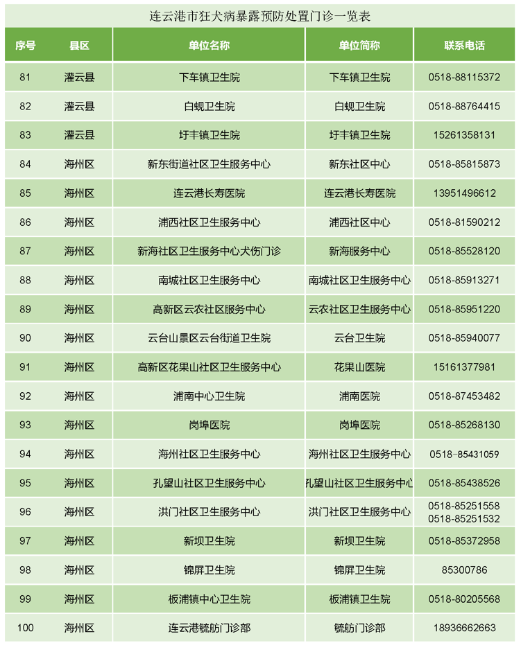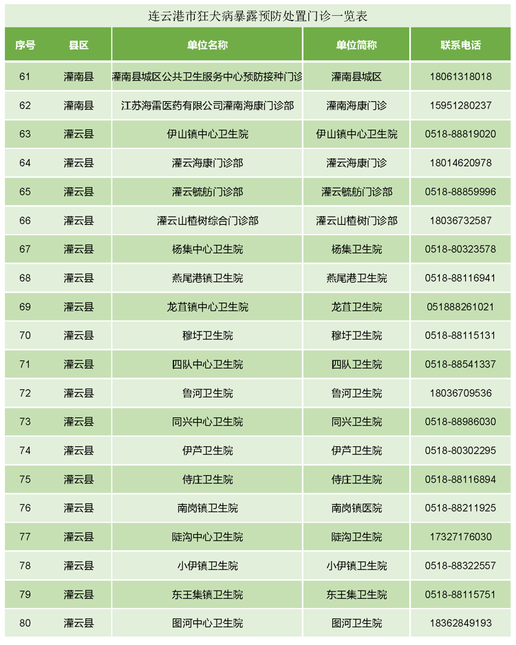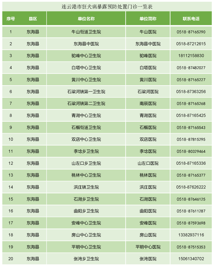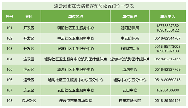 (备注:连云港市狂犬病暴露预防处置门诊一览表见附件。)