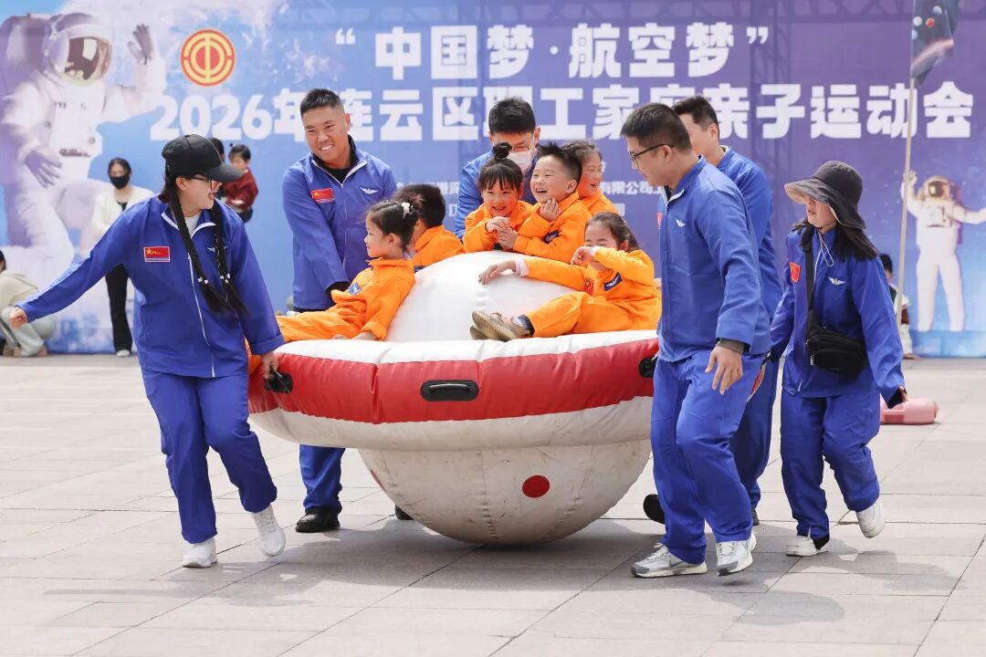 以家国情怀筑梦,以亲子同心奔跑。近日,由连云区总工会、连云港深喜嘉瑞宝投资经营管理有限公司工会联合举办的“中国梦·航空梦” 大型情景主题亲子运动会在嘉瑞宝广场欢快举行,全区300组职工家庭上演默契大比拼。