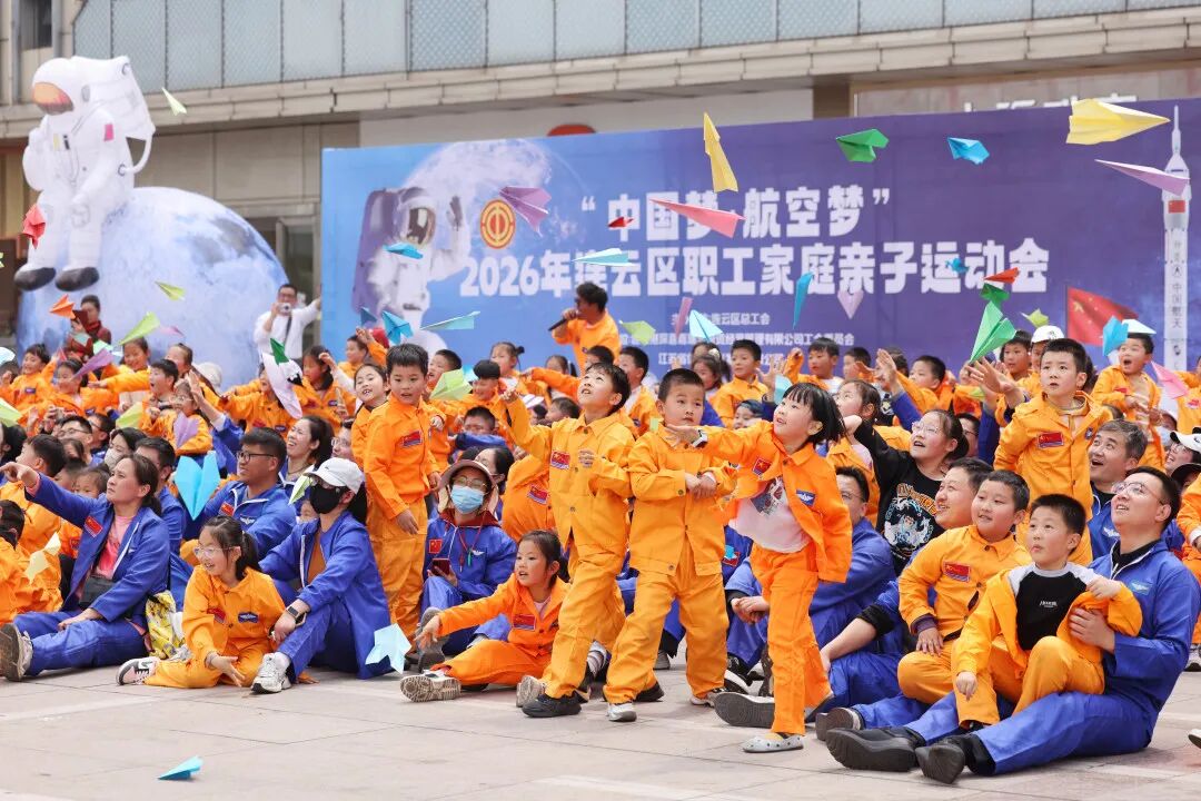 活动紧扣航空情景主题,设置火箭发射、宇宙大探险、遨游月球、筑梦蓝天等多项沉浸式亲子项目。赛场之上,职工家庭化身 “小小航空员”,家长与孩子并肩作战、默契配合,在奔跑与欢笑中解锁运动乐趣,在趣味运动中追逐航天梦想,在携手协作里传递家国情怀,定格了一幕幕温暖又热血的美好瞬间。