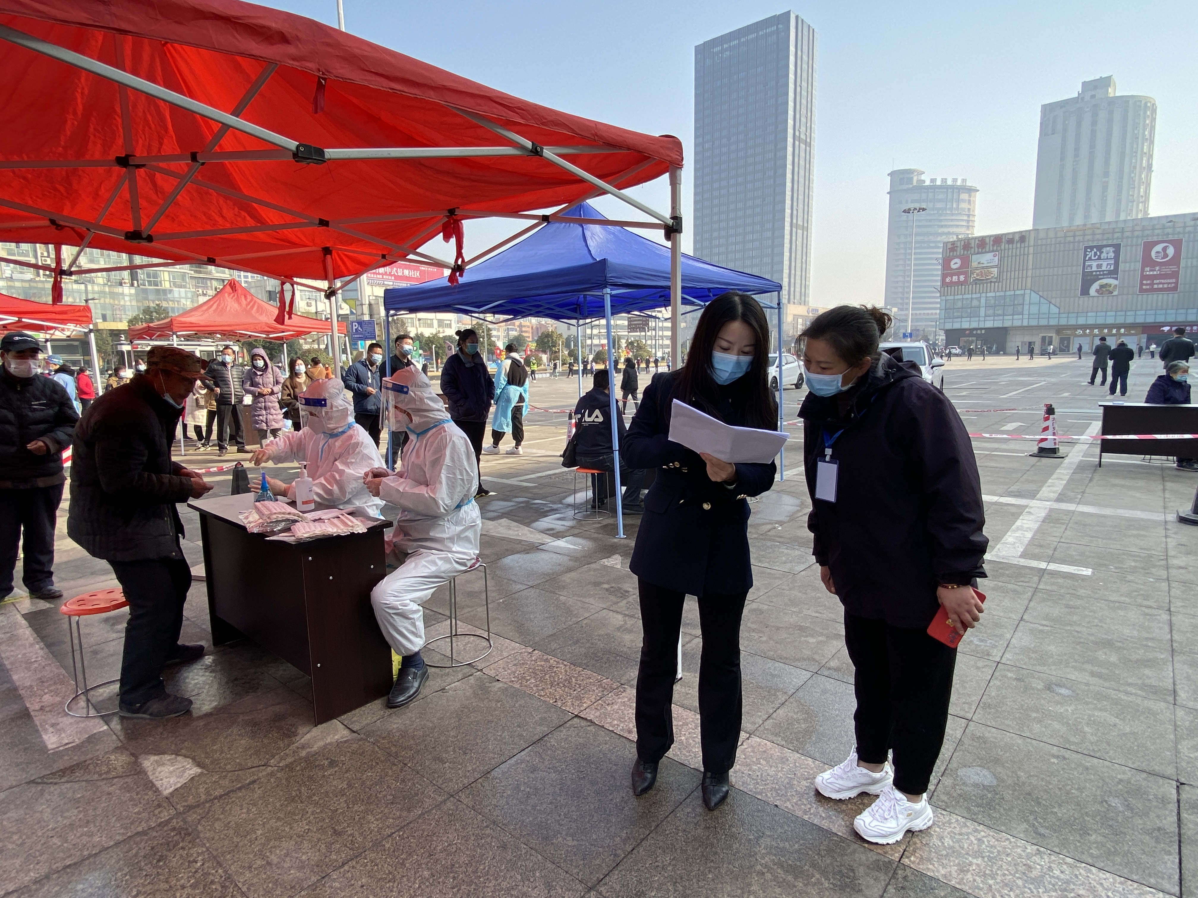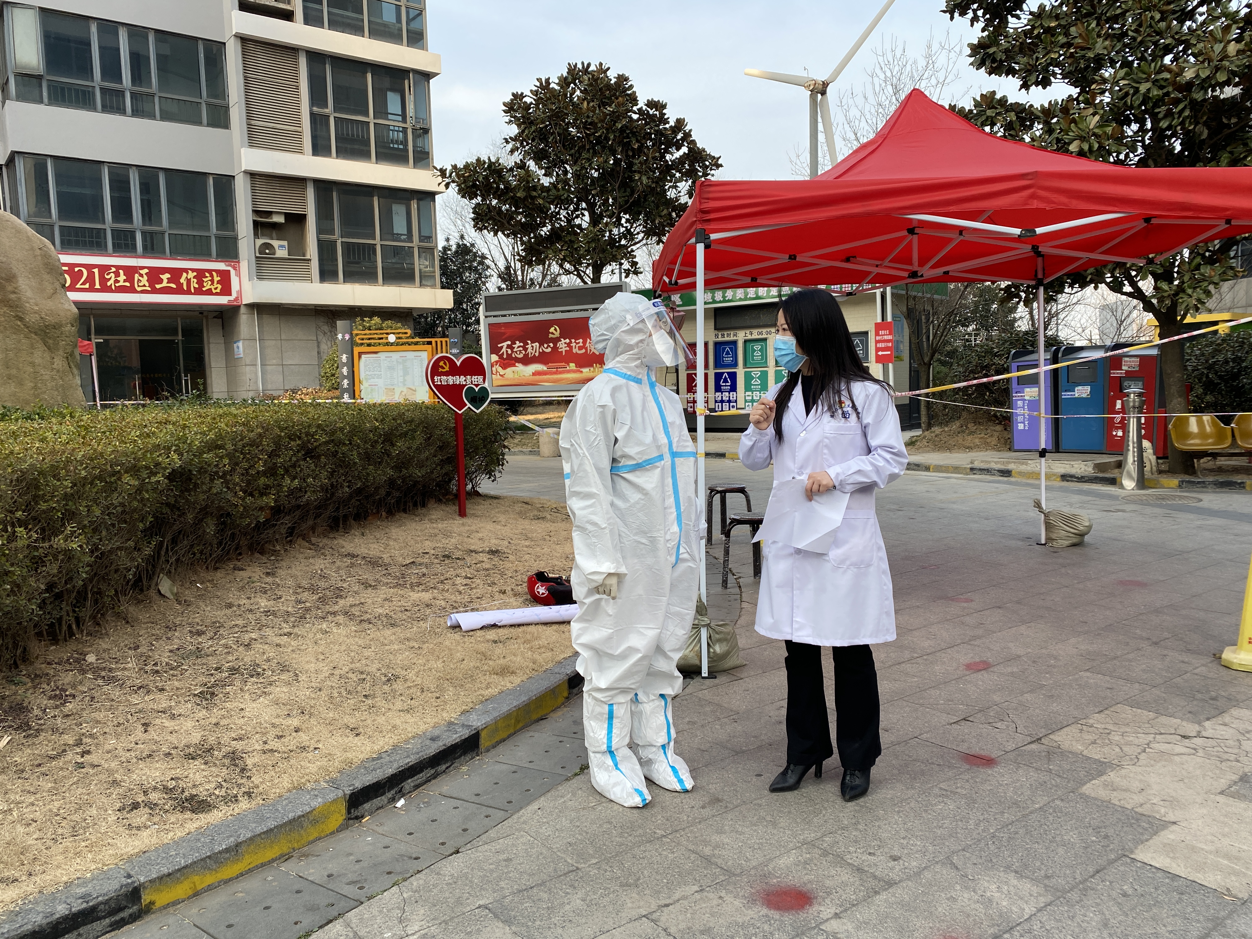 “请问你们点位上的负责人在么?你们这个点位的布置需要改进,采样人员应该在下风向,排队居民应该在上风向......”吴海霞干哑而坚毅的嗓音在空中回荡,这已经是这一日第30个点位的巡视指导了。“主任,已经将近2点钟了,您回去吃个饭再来指导吧!”“有问题就要即刻整改,我们做医务人员的,更应该严谨专业,还有最后5个点,我们巡视完了再回去!”说罢,又一头扎进了点位指导工作中......开展全员集中采样以来,吴海霞坚持每日点位巡视指导,累计300余次,即使脚底磨满了水泡,也不曾停下与病毒赛跑的脚步。